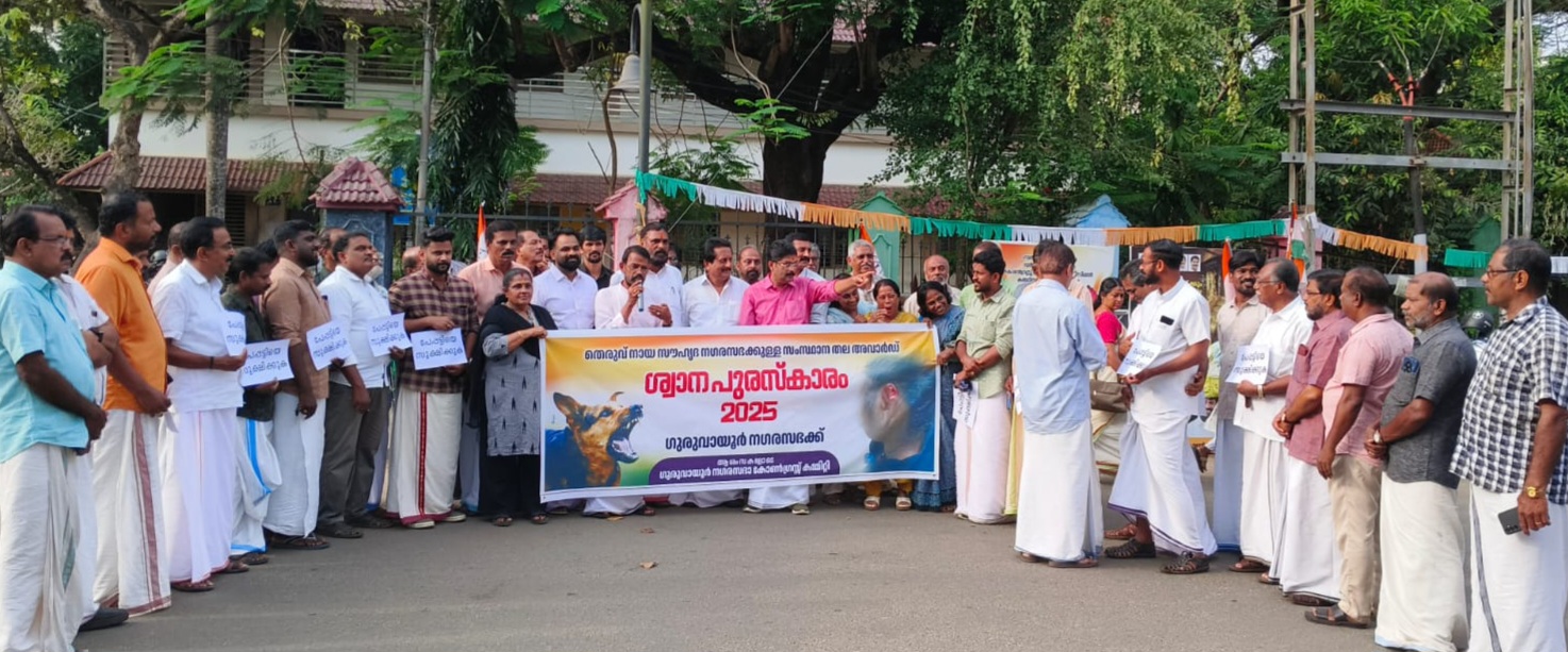 തെരുവ് നായസൗഹൃദ നഗരസഭക്ക് ശ്വാന പുരസ്ക്കാരം , കോൺഗ്രസ് പ്രതിഷേധം