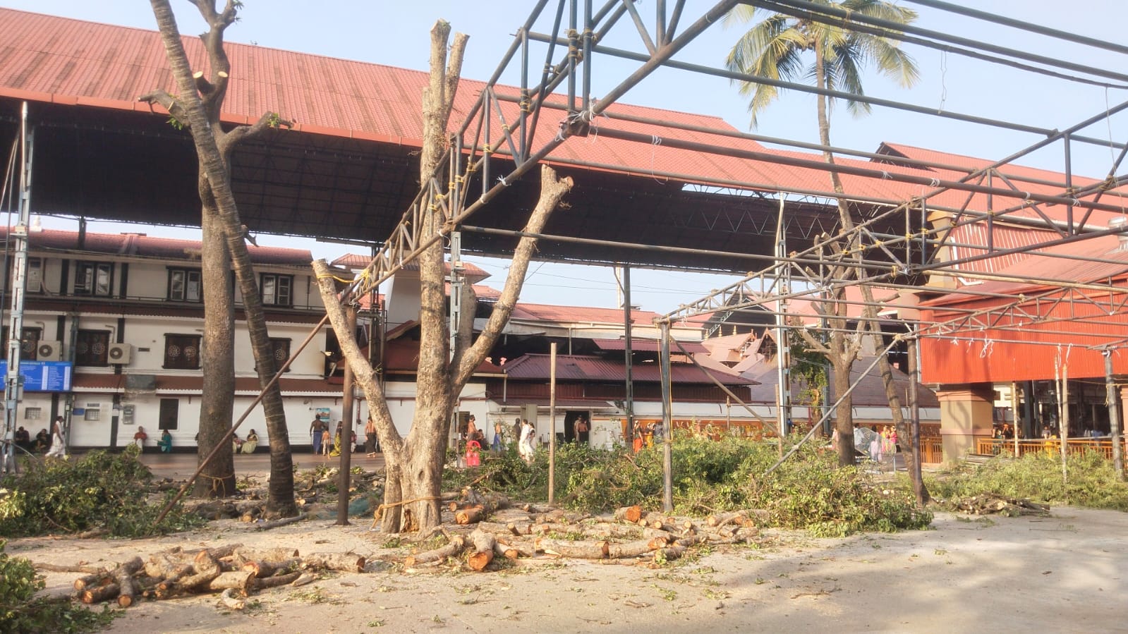 ഗുരുവായൂർ ക്ഷേത്ര നടയിലെ തണൽ മരങ്ങൾക്ക് കോടാലി വീണു