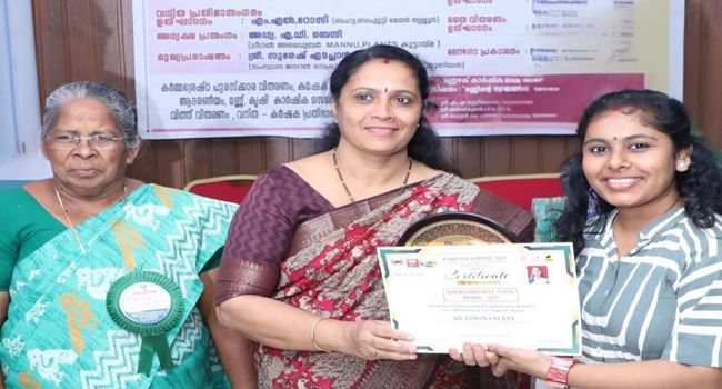 തൃശൂർ : കർമ്മശേഷിയിലൂടെ മാതൃകയായ അഡ്വ.എഡ്വിന ബെന്നിക്ക് കർമ്മ ശ്രേഷ്ഠ പുരസ്കാരം നൽകി ആദരിച്ചു. തൃശൂർ കേരള പ്ലാന്റ്സ് കൂട്ടായ്മ തൃശൂർ പ്രസ്സ് ക്ലബ്ബിൽ സംഘടിപ്പിച്ച ഹരിത കൊയ്ത്ത് ആദരണീയം ചടങ്ങിൽ വെച്ചാണ് തൃശൂർ കോർപ്പറേഷൻ ഡെപ്യൂട്ടി മേയർ എം. എൽ. റോസിയും കോർപ്പറേഷൻ കൗൺസിലർ റെജി ജോയ് ചാക്കോളയും ചേർന്ന് അഡ്വ. എഡ്വിനയെ പുരസ്കാരം നൽകി ആദരിച്ചത്. എൽ എ ഡി സി എസ് അഭിഭാഷകയായ എഡ്വിനയുടെ നിയമ പോരാട്ടത്തിൻ്റെ ഫലമായാണ് ഇന്ത്യയിലെ മുഴുവൻ എൽ എ ഡി സി എസ് അഭിഭാഷകർക്കും പ്രസവാനുകൂല്യം നൽകുവാൻ നാഷണൽ ലീഗൽ സർവ്വീസസ് അഥോറിറ്റി – നാൽസ- ഉത്തരവിട്ടത്.