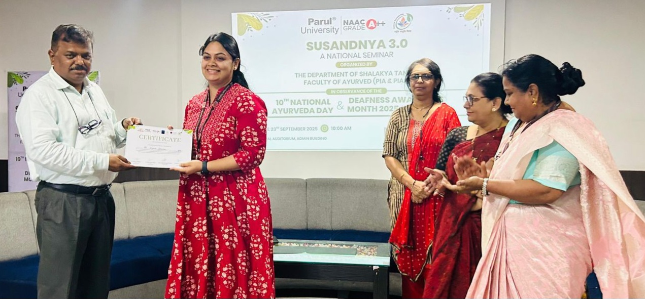 പാരുൾ സർവ്വകാലാശാല ആയുർവേദ വിഭാഗം ഡീൻ ഡോ. ഹേമന്ത് തോഷിക്കാനെ അവാർഡ് സമ്മാനിച്ചു.