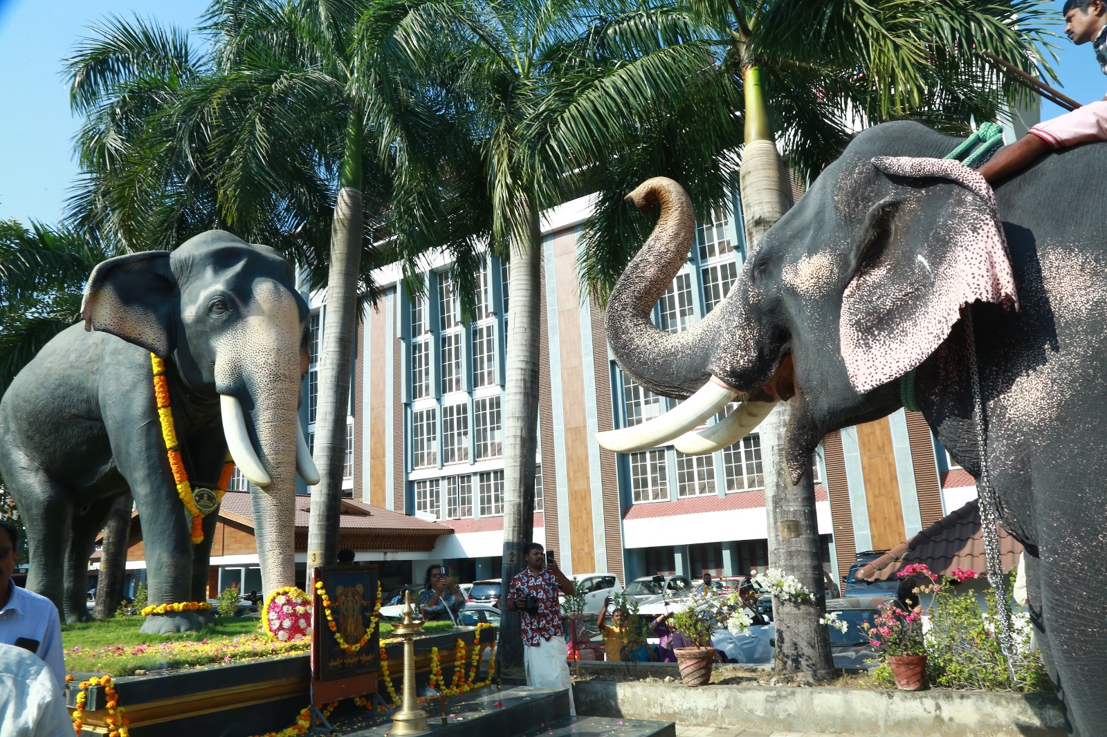 ദേവസ്വം ആനത്താവളത്തിലെ ഗജവീരൻ ദാമോദർ ദാസിൻ്റെ നേതൃത്വത്തിൽ