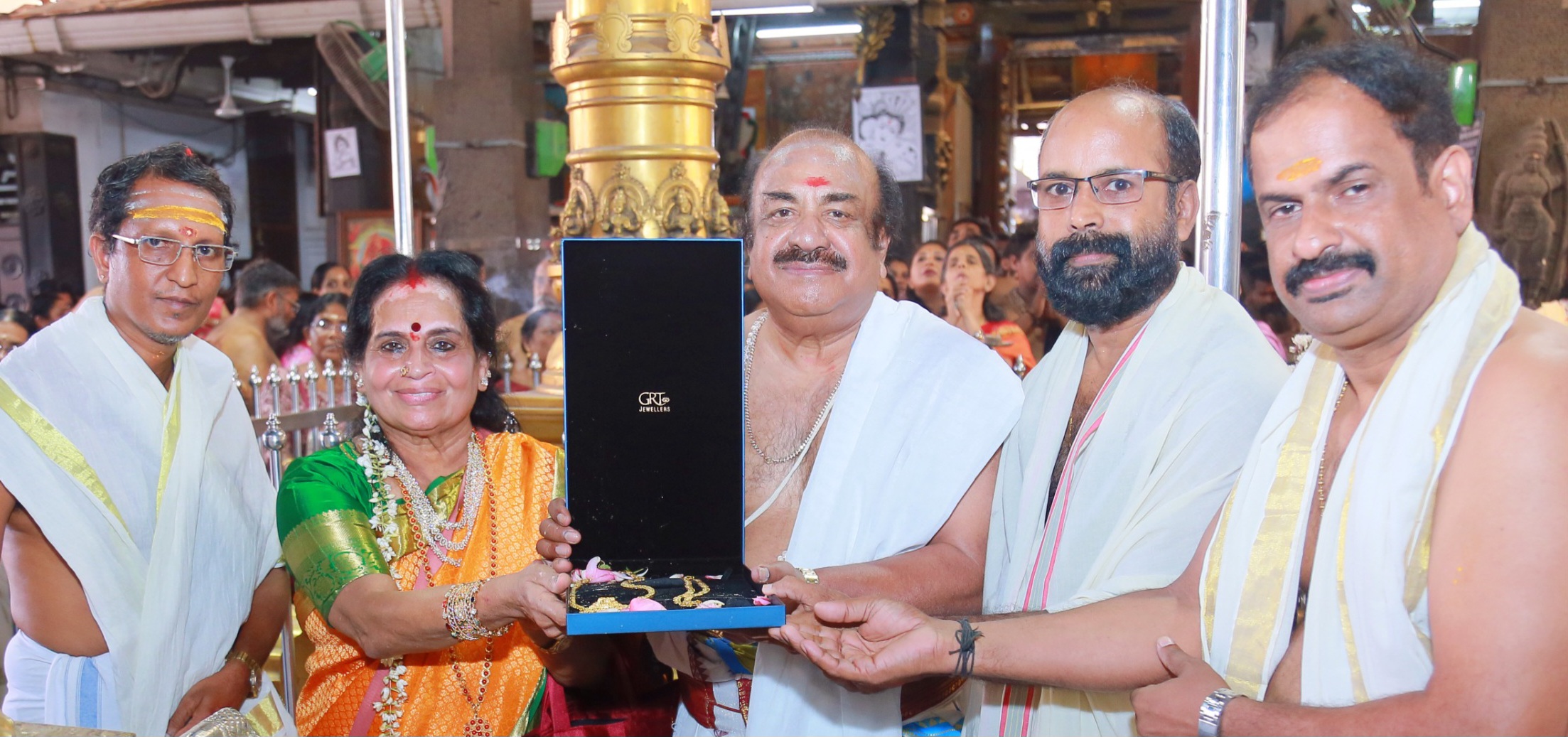 മുത്തുകൾ ചേർത്ത് ലക്ഷ്മീദേവിയുടെ രൂപം ആലേഖനം ചെയ്ത ലോക്കറ്റോടു കൂടിയ 57 ഗ്രാമിൻ്റെ സ്വർണ്ണമാലയും ഗണപതി രൂപം മുദ്രണം ചെയ്ത ലോക്കറ്റോടു കൂടിയ 41 ഗ്രാമിൻ്റെ മറ്റൊരു മാലയുമാണ് സമർപ്പിച്ചത്. ക്ഷേത്രം ഡപ്യൂട്ടി അഡ്മിനിസ്ട്രേറ്റർ പ്രമോദ് കളരിക്കൽ വഴിപാടുകാരിൽ നിന്നും മാലകൾ ഏറ്റുവാങ്ങി രശീത് നൽകി.
