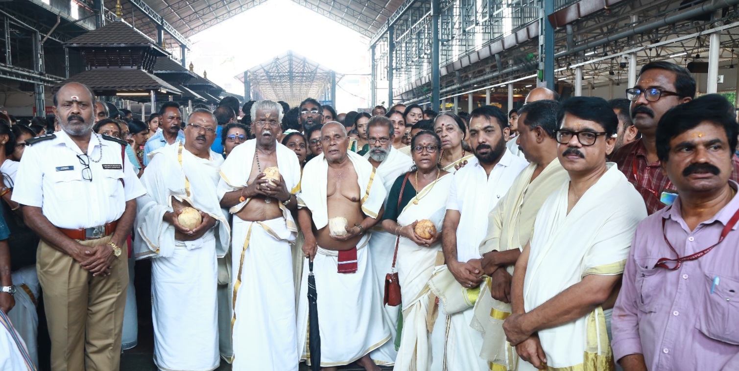 കിട്ടയുടെ അനന്തരാവശി കുടുംബത്തിലെ മുതിർന്ന അംഗം സുബ്രഹ്മണ്യനെ മാലയിട്ട് ക്ഷേത്രത്തിലേക്ക് ദേവസ്വം ഭരണസമിതി അംഗങ്ങൾ ആനയിച്ചു. കിട്ടയുടെ കുടുംബാംഗങ്ങളായ പത്തിലേറെ പേരാണ് ഇളനീരഭിഷേകത്തിനുള്ള കരിക്കുമായെത്തിയത്. ദേവസ്വം ഭരണസമിതി അംഗങ്ങളും കൃഷ്ണനാട്ടം കലാകാരന്മാരും ഭക്തരും ദേവസ്വം ജീവനക്കാരും ചേർന്ന് നാമജപ ഘോഷയാത്രയായി സംഘത്തെ ക്ഷേത്രത്തിലേക്ക് ആനയിച്ചു.