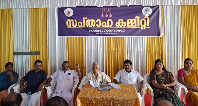 ഗുരുവായൂർ : പേരകം സപ്താഹകമ്മിറ്റിയുടെ നേതൃത്വത്തിൽ 28 മുതൽ ഒക്ടോബർ 5 വരെ ശ്രീമദ് ഭാഗവത സപ്താഹ യജ്ഞം നടത്തുമെന്ന് സംഘാടകർ വാർത്ത സമ്മേളനത്തിൽ അറിയിച്ചു . ഞായറാഴ്ച കാലത്ത് 6 മണി മുതൽ സമ്പൂർണ്ണ നാരായണിയ പാരായണത്തോടെ സപ്താഹയജ്ഞത്തിന്റെ ആരംഭം കുറിക്കും . 9 മണി മുതൽ ഭക്തജനങ്ങളുടെ കലവറ നിറക്കൽ ആരംഭിക്കും, വൈകിട്ട് 3 മണിക്ക് മുള്ളരാട്ട് മുത്തപ്പൻ കാവ് ക്ഷേത്രത്തിൽ നിന്നും ഭാഗവത ഗ്രന്ഥത്തോടും യജ്ഞവേദി യിൽ പ്രതിഷ്ഠിക്കാനുള്ള വിഗ്രഹത്തോടും കൂടിയുള്ള വിളംബര ഘോഷയാത്രക്ക് 4 മണിക്ക് യജ്ഞവേദിയിൽ സ്വീകരണം. ഘോഷയാത്രയ്ക്ക് 4