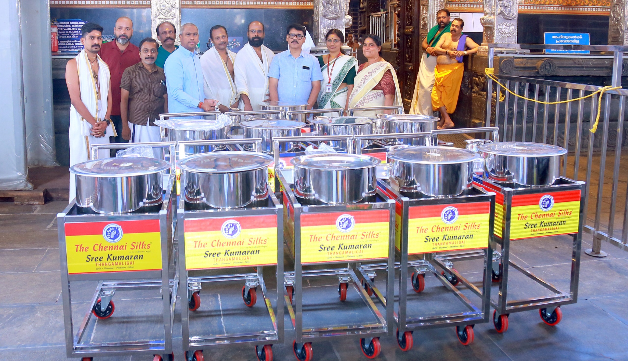 പൊതുവരി നിൽക്കുന്ന ഭക്തർക്ക് യഥേഷ്ടം കുടിവെള്ളമെത്തിക്കാനുള്ള വാട്ടർ ട്രോളികൾ സമർപ്പിച്ചത് തിരുപ്പൂർ കറുവംപാളയം ആലങ്കാട് സ്വദേശിയും ചെന്നൈ സിൽക്സ് എംഡി യുമായ എ പ്രസന്ന അങ്കുരാജ് ആണ്.