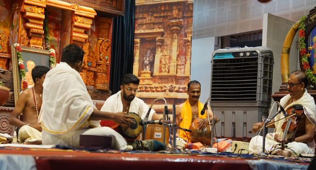 കേശവ് മോഹൻ ബാംഗ്ലൂർ വയലിനിലും , പ്രൊ : വൈക്കം വേണുഗോപാൽ മൃദംഗത്തിലും , തിരുവനന്തപുരം ആർ രാജേഷ് ഘടത്തിലും നെയ്യാറ്റിൻകര കൃഷ്ണൻ മുഖർ ശംഖിലും പക്കമേളം തീർത്തു .