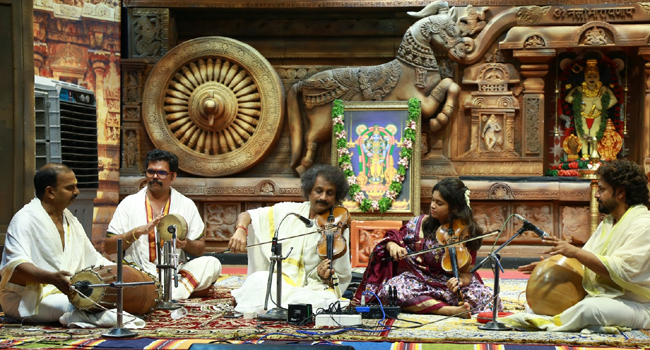 ഗുരുവായൂർ : ചെമ്പൈ സംഗീതോത്സവത്തിൽ മൈസൂർ മഞ്ജു നാഥ് ,മാളവ്യ മഞ്ജു നാഥ് എന്നി വരുടെ വയലിൻ കച്ചേരി സംഗീതാസ്വാദകർക്ക് വേറിട്ട അനുഭവമായി .ത്യാഗ രാജർ കൃതികളായ “ബ്രോവ ഭാരമാ ” ബഹു ധാരി രാഗം ആദി താളം , “ജ്ഞാന മൊ സഗരാദ പൂർവി കല്യാണി രാഗം രൂപക താളം , “സാമജു വരഗമന ” ഹിന്ദോള രാഗം ആദി താളം എന്നീ കീർത്തന ങ്ങൾ വയലിനിൽ വായിച്ച ശേഷം നാരായണ തീർത്ഥർ നീലാംബരി രാഗത്തിൽ രചിച്ച മാധവ മാമവ ( ആദി താളം ) എന്ന കീർത്തനം വായിച്ചാണ് വയലിൻ മാന്ത്രികത അവസാനിപ്പിച്ചത് . നാഞ്ചിൽ അരുൾ മൃദംഗത്തിലും , നീതുൽ അരവിന്ദ് ഗഞ്ചിറ യിലും , വാഴപ്പള്ളി കൃഷ്ണ കുമാർ ഘടത്തിലും പക്കമേള മൊരുക്കി .